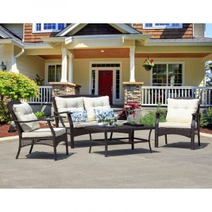 Adelita 4 Piece Rattan Sofa Seating Group with Cushions