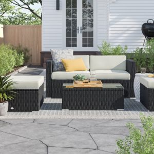 Hazen 5 Piece Rattan Sectional Seating Group with Cushions