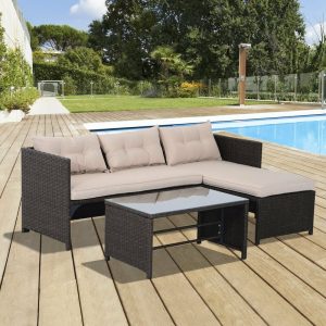 Petekar 3 Piece Rattan Sectional Seating Group with Cushions