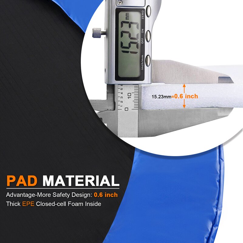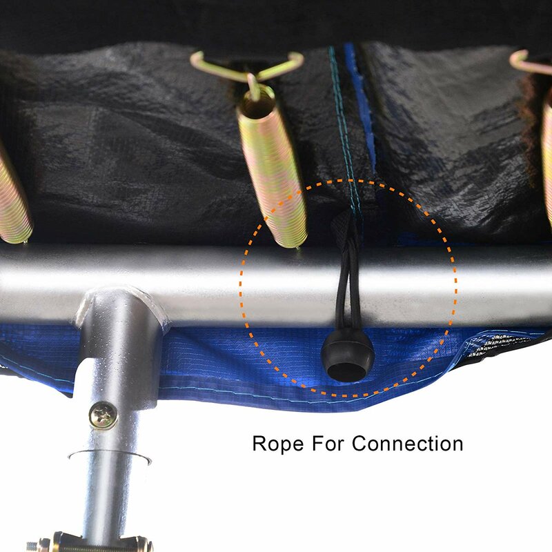ExacMe trampolines are made with strong, rust-resistant galvanized steel tubing, which is safer and longer-lasting than conventional welded trampolines The 12 balanced contact points add stability and prevent wobbling or tipping, also add more weight capability. Galvanized Springs provide a deeper, more exciting bounce. Ftrampoline has a 375-pound maximum weight capacity, is easy to assemble and requires no tools or extra drilling, and meet all ASTM, TUV and GS quality and safety requirements. A zipper enclosure allows easy in-and-out, the rust-resistant frame will hold up to years of heavy outdoor use.