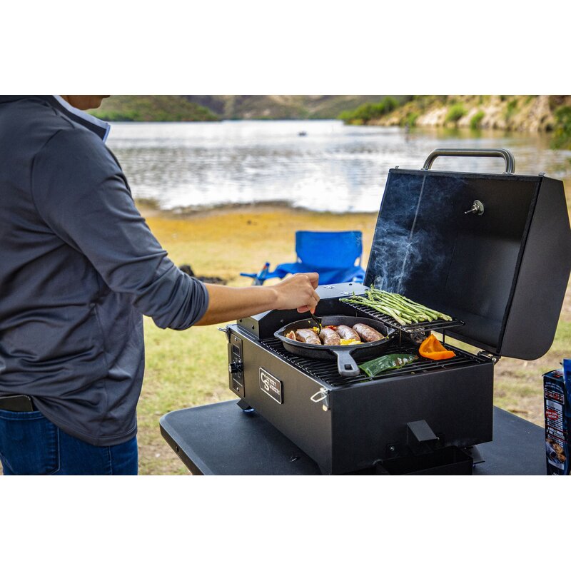 This wood pellet grill is a sleek, compact pellet grilling machine. Named for its portability, with a clean, black sand finish, it provides savory, wood-fired flavor in a transportable package. The traveler is soon to be your go-to grill for any and every outing. Grill, sear, smoke, BBQ and so much more – whenever and wherever you want. It’s never been this easy to create smokehouse quality food while adventuring. By pushing a button talk about easy, this piece is the perfect pellet grill for outdoor enthusiasts, tailgating fanatics or anyone looking to take wood-fired flavor with them on their journeys.