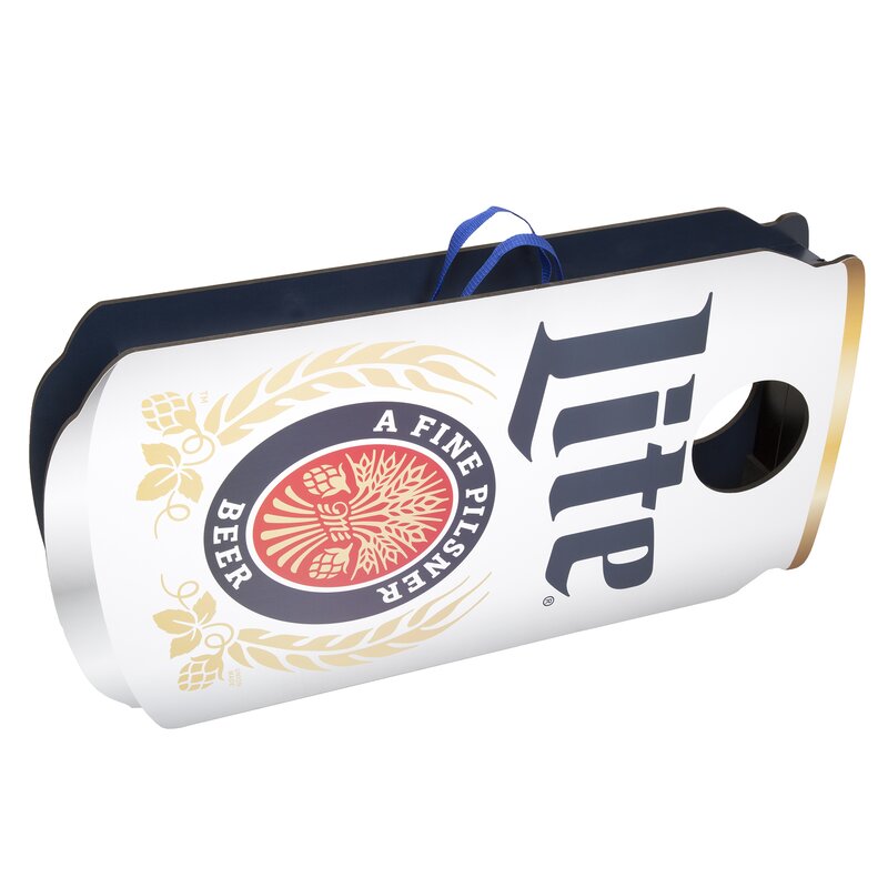 Enjoy outdoor fun for all ages with this 1.58′ x 3.08′ Miller Lite Can Manufactured Wood Cornhole Board. Bean bag toss or cornhole is the perfect game for your next cookout, picnic or tailgate. It’s easy to play and fun for all ages. This set includes two durable wooden boards which feature the iconic can shape. These boards hinge together and latch for easy suitcase style transport to your next outdoor function.
