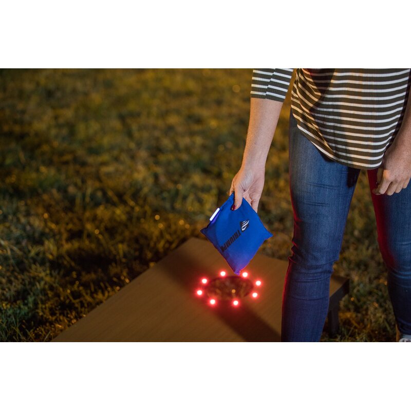 Play the traditional bag toss game in an innovative way with the 2′ x 3′ Tournament Manufactured wood Cornhole Board. The game platforms are lighted with small red lights, making them look stunning in your backyard. The bean bags include glow sticks, which add more brightness to the game. They are equipped with handles for easy transport. The Lighted Bag Toss Tournament Game Set from Triumph Sports USA is perfect for nighttime play. Add two 9-volt batteries are you are sure to have the time of your life with this game set.