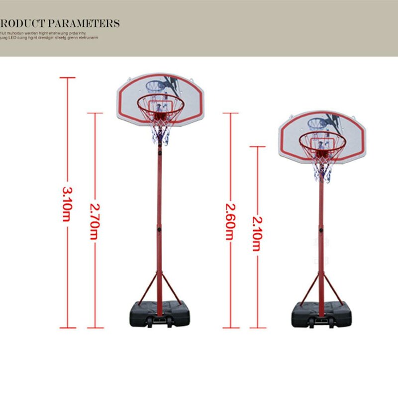 Adjustable Height from 6.9 to 8.5 Feet Powder-coated angular steel telescopic system offers adjustable height, telescoping height adjustment mechanism of our basketball hoop easily adjusts from 6.9 to 8.5 Feet. Increasing Stability Large PE molded base can be filled with water or sand to increase stability; so your kid can jam with the confidence that their hoop will stay standing. Basketball Hoop System will give you an authentic basketball experience. PP Wheels for Portability The basketball Hoop / Goal is easy to portable because of the attached wheels; And it is perfect for playing basketball with your neighbors, friends or family outdoor or indoor. Durable and Sturdy With a large PE molded base, sturdy PP backboard, and strong nylon net, it is made to withstand many years of competitive play. Heavy-duty steel-made basketball rim is built to last and won’t break off easily. Multi Uses The basketball Hoop / Goal letting players of all ages and skill levels enjoy the game on their own terms. Great for kids, junior, youth for full enjoy playing. Easy to Assemble You don’t need the other tools to assemble the basketball goal stand.