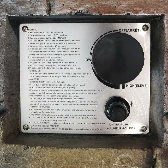 - Lp tank sits alongside unit: Designed for 20-pound LP tank (not included) to conveniently sit outside of the unit so you can easily access it; to use fire pit once your propane tank is hooked up insert the included AAA battery push the flame control knob in a counter-clockwise rotation to low and then push the igniter button until flame lights
