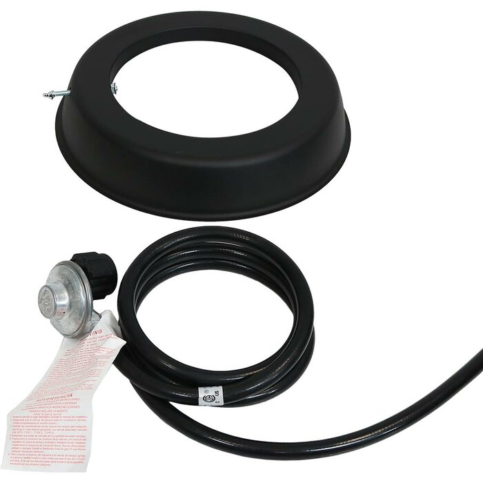 - Includes everything you need: Fire pit unit a stainless steel burner a AAA battery for ignition a bottle of touch-up paint a polyester storage cover 6 pounds of lava rock and a gas hose with regulator