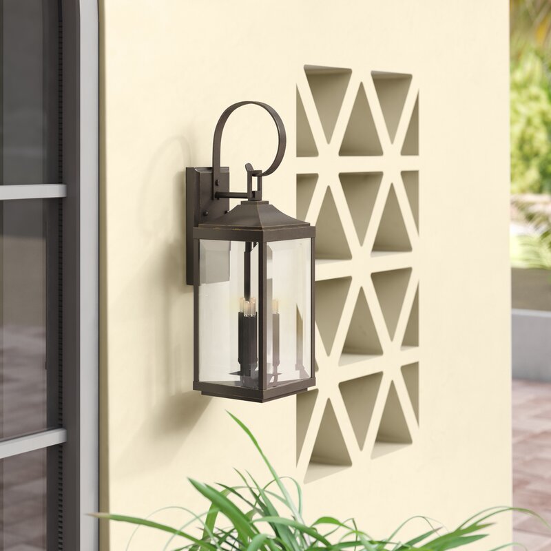 Beyond brightening your abode, this lantern welcomes guests by the front door, increases safety, and lends little curb appeal to your outdoor ensemble. Crafted from aluminum with a dark brown finish, this wall sconce features four clear glass walls with beveled accents and is attached to a decorative shepherd’s crook finial. This luminary accommodates three 60 W E12 incandescent light bulbs, although none are included. And since it’s designed for wet spaces, rainstorms can roll by and this piece will still wash your home in light.