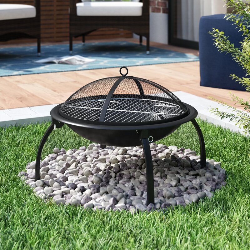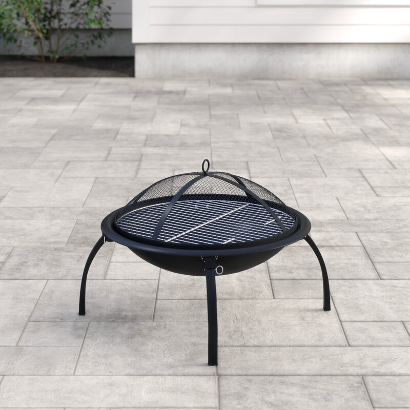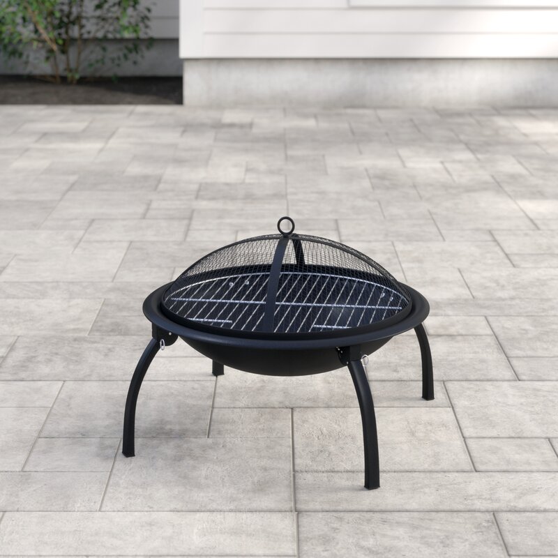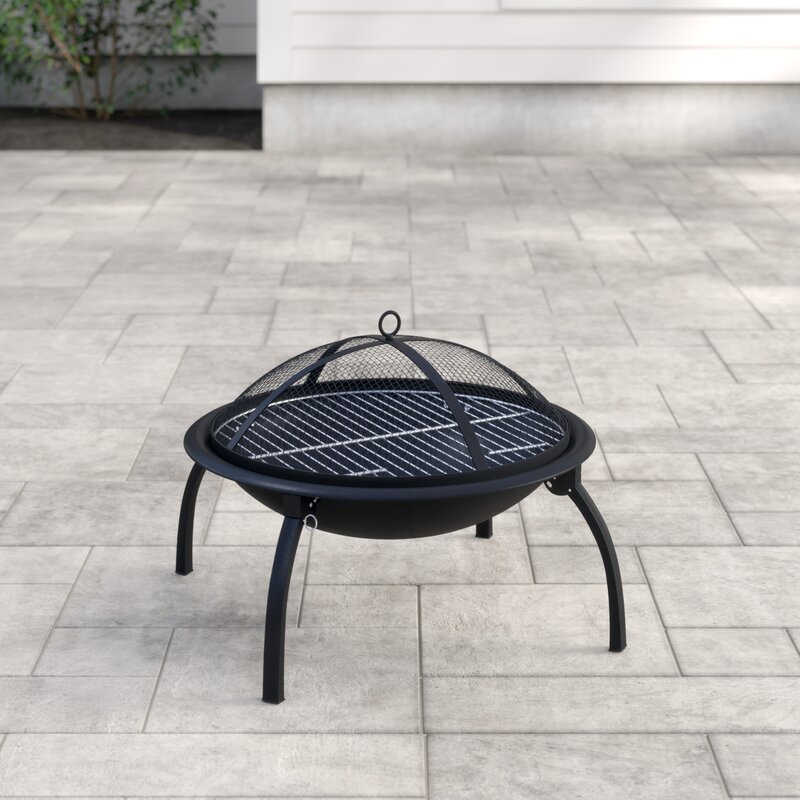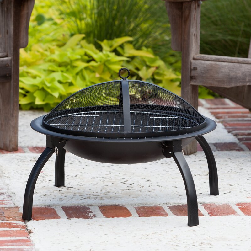What’s better than a poolside fire pit? A little blaze on the patio? Maybe a campsite cookout? With this design, you can have all three! Crafted from steel, this design features legs that fold up for easy transportation. With an included canvas carry bag, it’s a cinch to tote this pit exactly where you want it. Log and cooking grates allow you to relax or make s’mores, depending on the mood, while a spark screen cover protects friends and family from jumping embers. It also includes a poker.