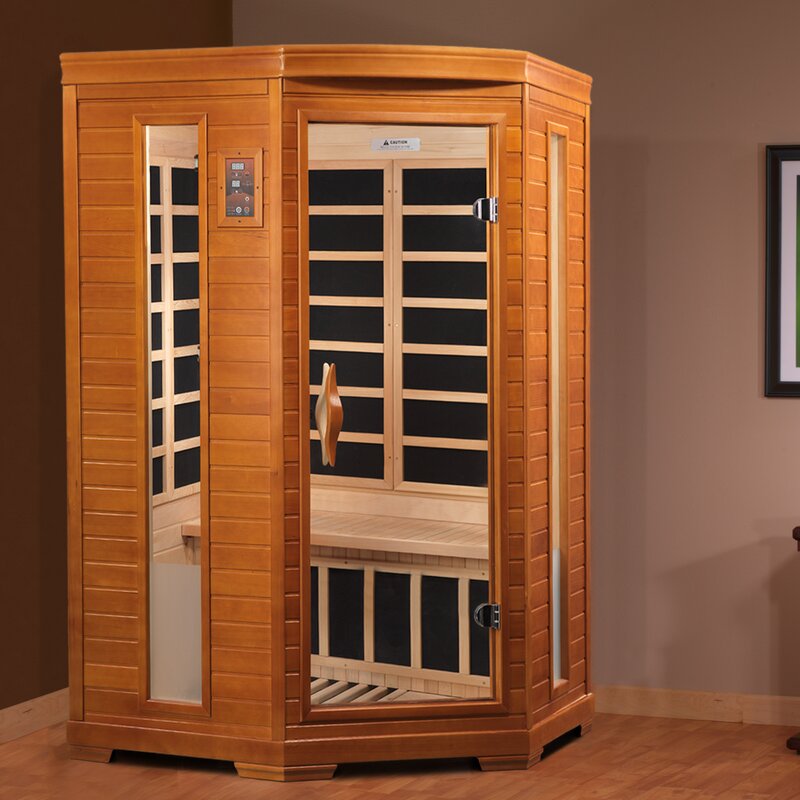 2 Person corner sauna offers 7 infrared Carbon Energy Efficient heating panels (including an industry leading foot heater) that produce a wider, softer heat that is evenly distributed throughout the sauna. The infrared Carbon Energy Efficient heating panel heaters are 30% larger than saunas heated by ceramic tubes and penetrate skin 40% more to maximize therapeutic benefits. Unlike ceramic heaters, you will never have to replace our Carbon Energy Efficient heating panels. Saunas Carbon Energy Efficient panels also heats up 30% faster than saunas equipped with ceramic panels and 100% faster than rock and water steam saunas. Unlike traditional rock and water saunas (which heat at or over 200 degrees and do not penetrate your skin),these saunas operate at a much lower and safer 130 Fahrenheit. In fact, they operate most effectively at 120 Fahrenheit thus allowing you to enjoy the sauna longer and maximize all potential health benefits.2 person sauna is designed for ease of use and is an outstanding value. Enjoy the convenience of operating your sauna with the dual (interior and exterior) soft touch control panel and LED display featuring sauna temperature and time functions. Play your favorite music through the saunas built-in Radio, CD, and MP3 auxiliary connection with speakers. The sauna plugs into any dedicated 15 amp 110 volt outlet so no special wiring is required and the sauna may be installed on carpet and at any indoor location including the basement, garage, master bath or walk in closet. This sauna would be a beautiful and worthwhile addition to any fitness room and could be incorporated as a part of your fitness routine. See and feel the difference today!