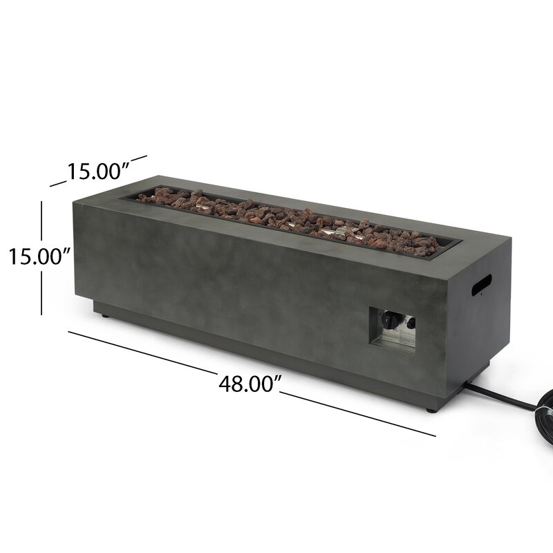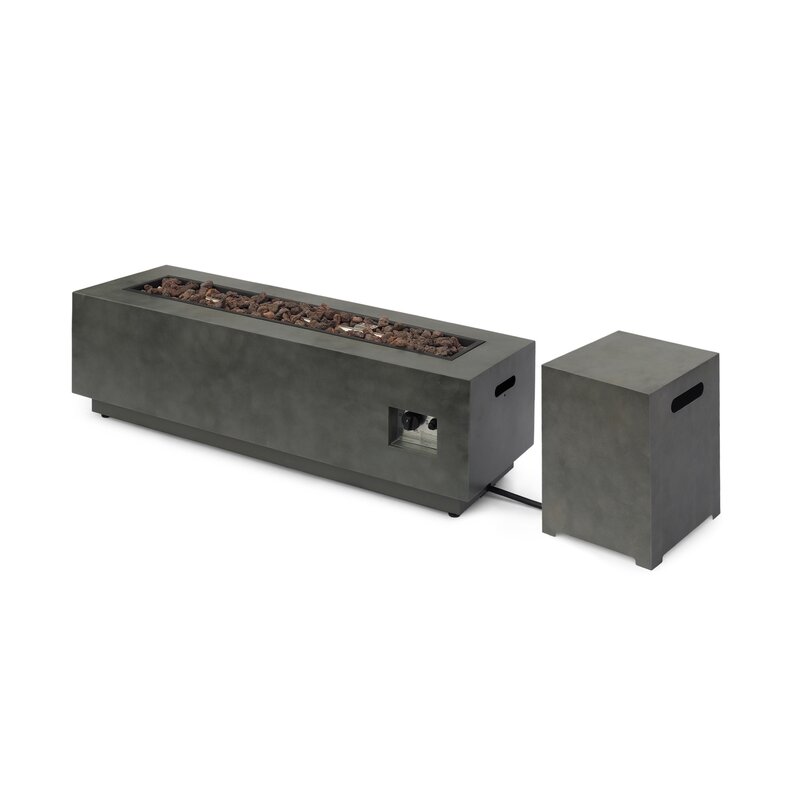 Enjoy a warm glow of a delightful fire on a relaxing summer evening with some of your closest friends and family. With a rectangular structure of sleek, powder-coated iron, this piece not only offers an incredible upgrade in style but is also perfect for parties due to its easy seating arrangement and matching tank holder. From intimate conversations around a cozy fire to stargazing on cool summer nights, our wonderful fire pit will have no trouble gathering everyone together for hours of quality time.