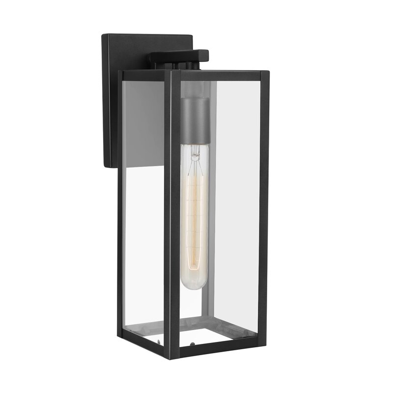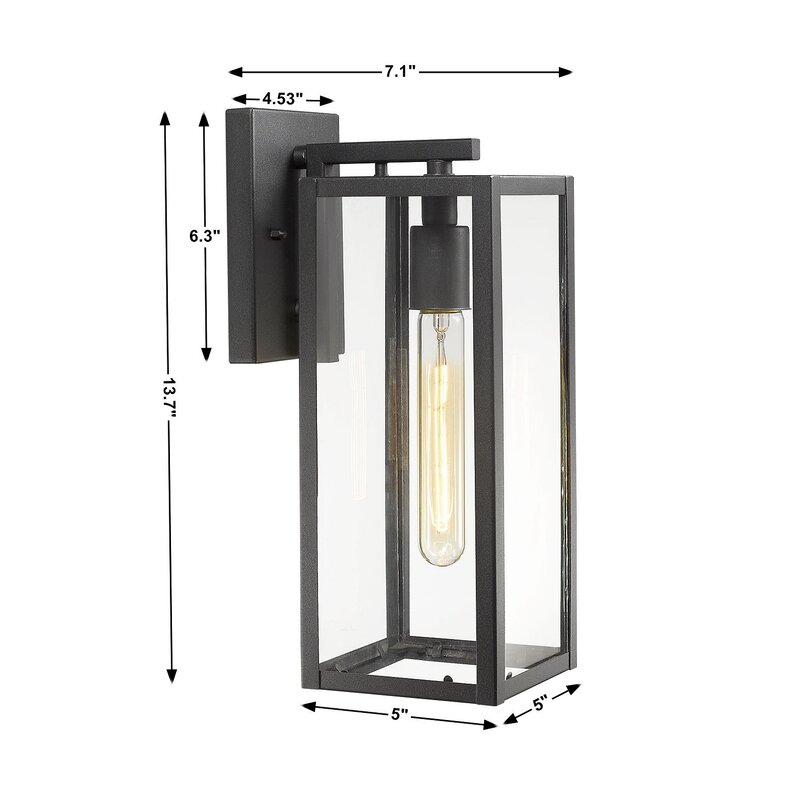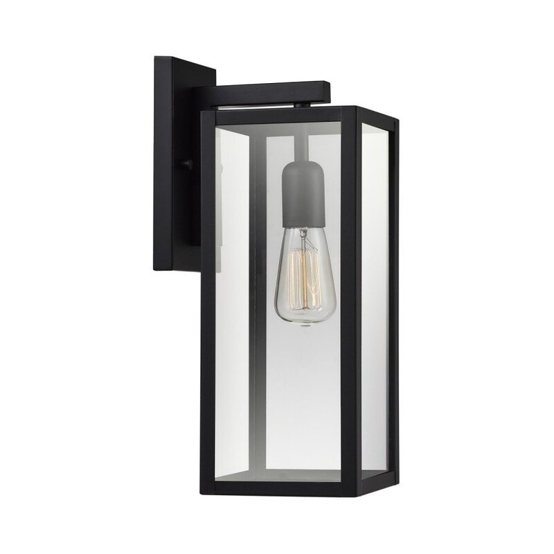 Complement your front door, entryway, or porch with this versatile 1-light armed sconce. A weather-resistant piece that’s ideal for any indoor and outdoor environment, this metal fixture features clear glass panes that showcase your bulb of choice, and a classic black finish that goes with your modern decor. Measuring 14” H x 5” W, it’s easy to install on your wall, and its compatible 60W light bulbs (bulbs not included) are sure to bring some brightness into your living space, whether it’s indoors or out.
