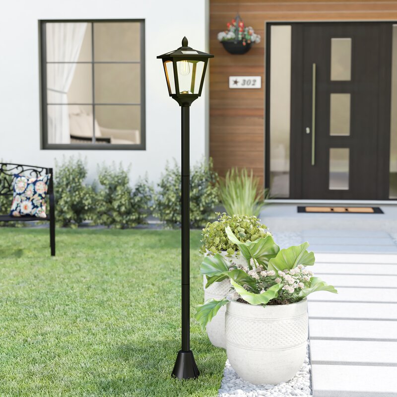 Lamotte Street Vintage Outdoor Garden 70″ LED Solar Lamp Post