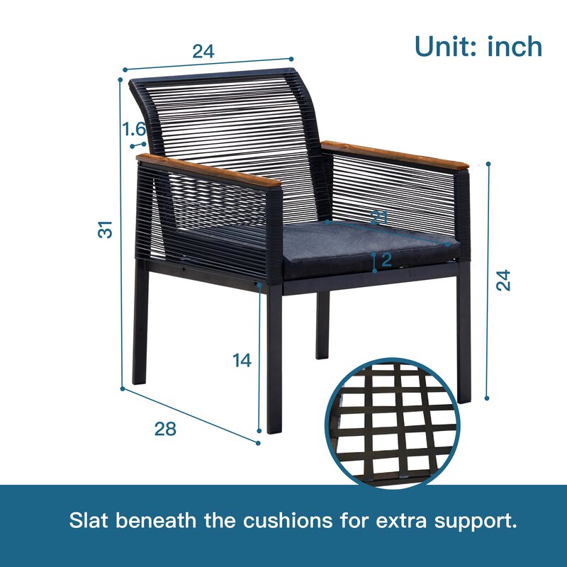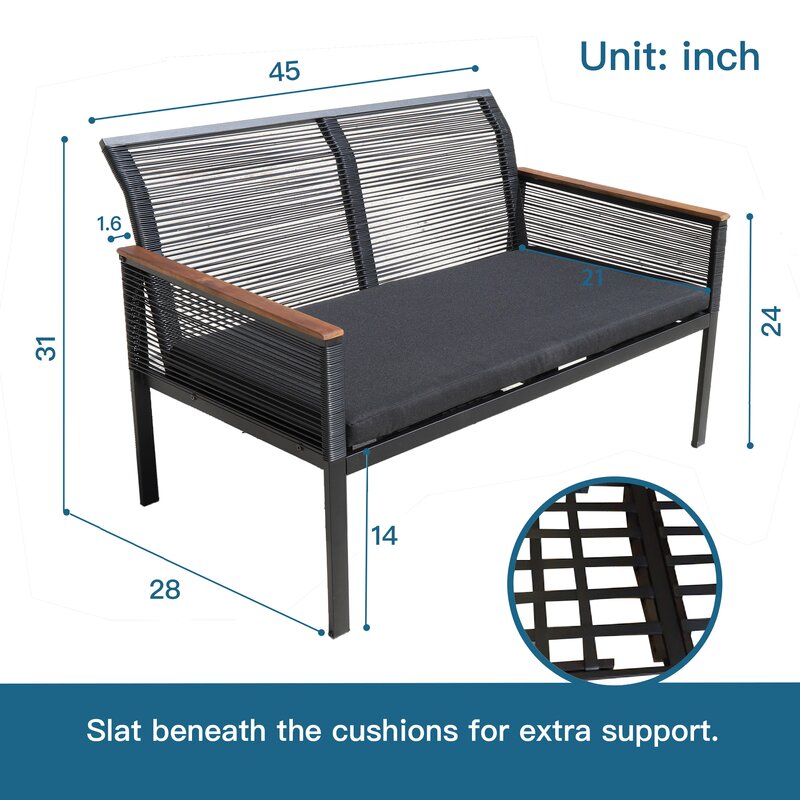- Pieces Included: 1 Loveseat, 2 chairs and 1 table