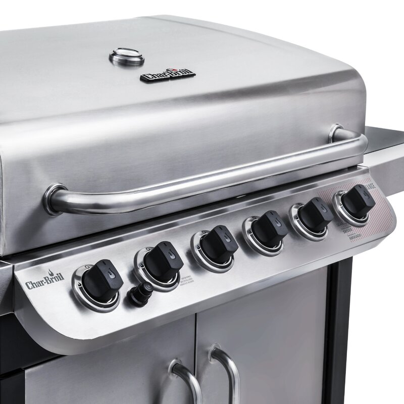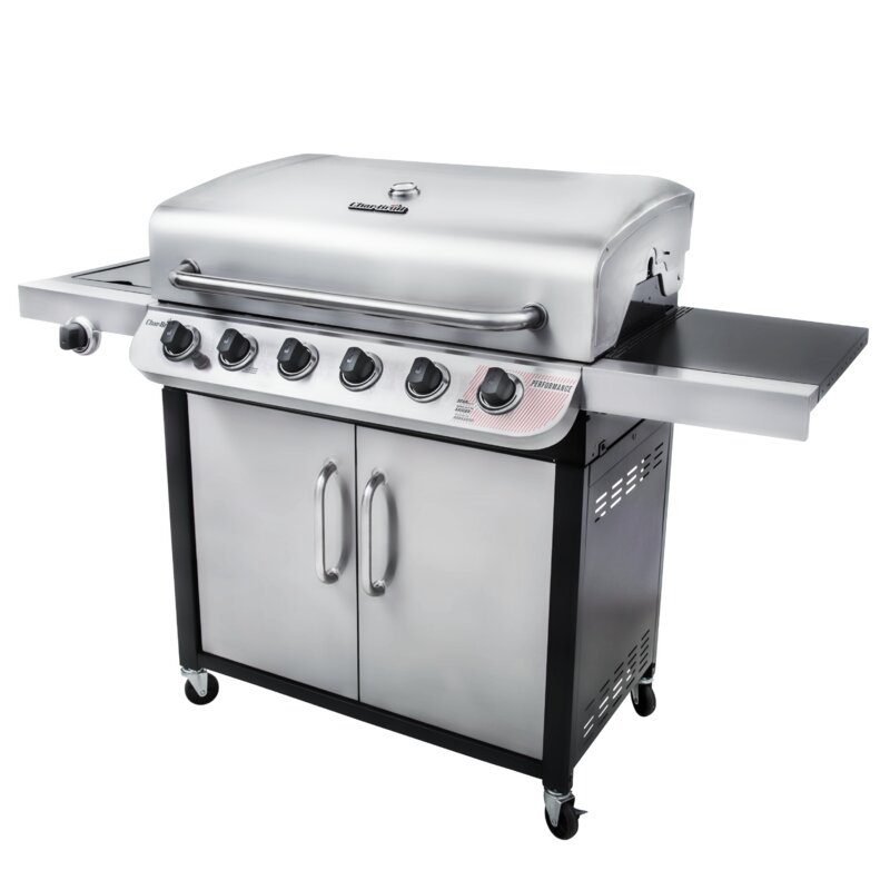 This Performance Series 6-Burner Propane Gas Grill packs a ton of grilling features into a sleek stainless steel cabinet design. This grill is made to last, with porcelain-coated cast iron grates that are rust-resistant and easy to clean. All the features are here including a removable porcelain-coated grease pan, cabinet doors for storage, an electronic igniter and a 15,000 BTU sear burner for locking in juices & grilling up flavorful steaks.