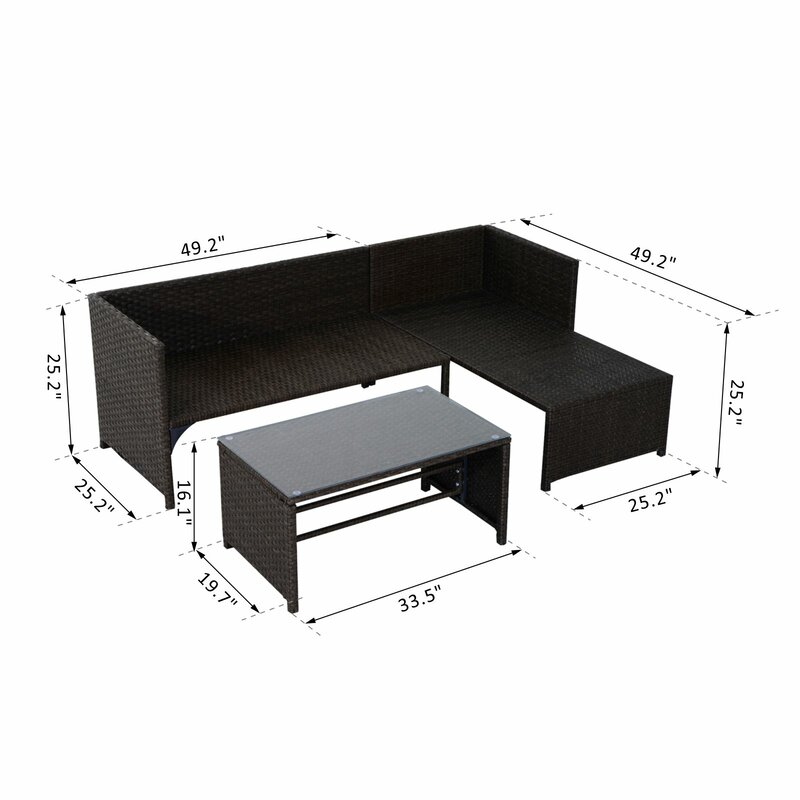 - Pieces Included: 1 Chaise, 1 Sofa and 1 Table