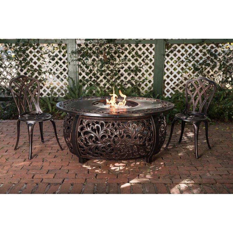 Fleur De Lis Living is proud to offer multifunctional Toulon Aluminum Propane Fire Pit Table. This 50,000 BTU unit operates on a standard 20 lb. The propane tank safely sits underneath the unit and is accessible through a hinged door. Fleur De Lis Living Toulon Aluminum Propane Fire Pit Table not only functions as a fire pit but an outdoor patio table as well with its convenient cast aluminum fire bowl lid. This unit produces a beautiful fully adjustable flame. Comes complete with clear fire glass (18 lbs.) and covers for fire pit and propane tank.