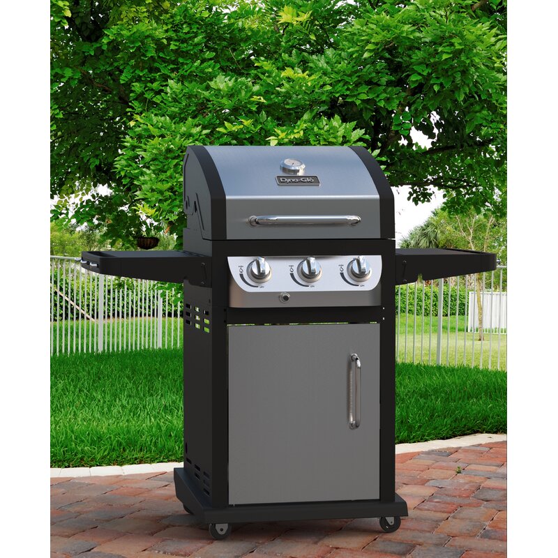 The Dyna-Glo Smart Space Living 3-Burners Gas Grill with Folding Side Table is designed to fit in smaller decks and patios and brings style and efficiency to your cooking experience. It has primary cooking space that allows you to easily cook with sufficient space. The drop down tables at the side gives you extra space to keep plates and cutleries for serving. Its tube burners are made using stainless steel and are sturdy and durable. The double-wall liner hood of the Smart Space Living 3-Burners Gas Grill with Folding Side Table retains the heat to better cook the food.