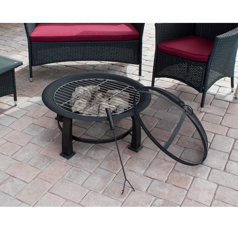 Add warmth and ambiance to your patio, deck, or backyard with this square wood burning fire pit. This fire pit is made of sturdy steel with a brushed finish. It features a round shape and modern design to complement any style and is easily portable. Its deep bowl makes this fire pit ideal for burning larger fires and even roasting marshmallows! It comes complete with an easy to lift mesh spark guard.