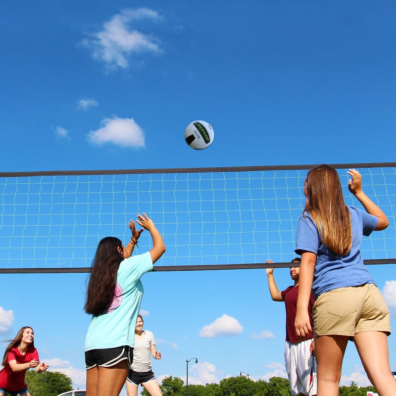 - This classic volleyball set is extremely quick and easy to assemble; the push-button locking system makes it a snap to set up in the yard or behind the school for gym class