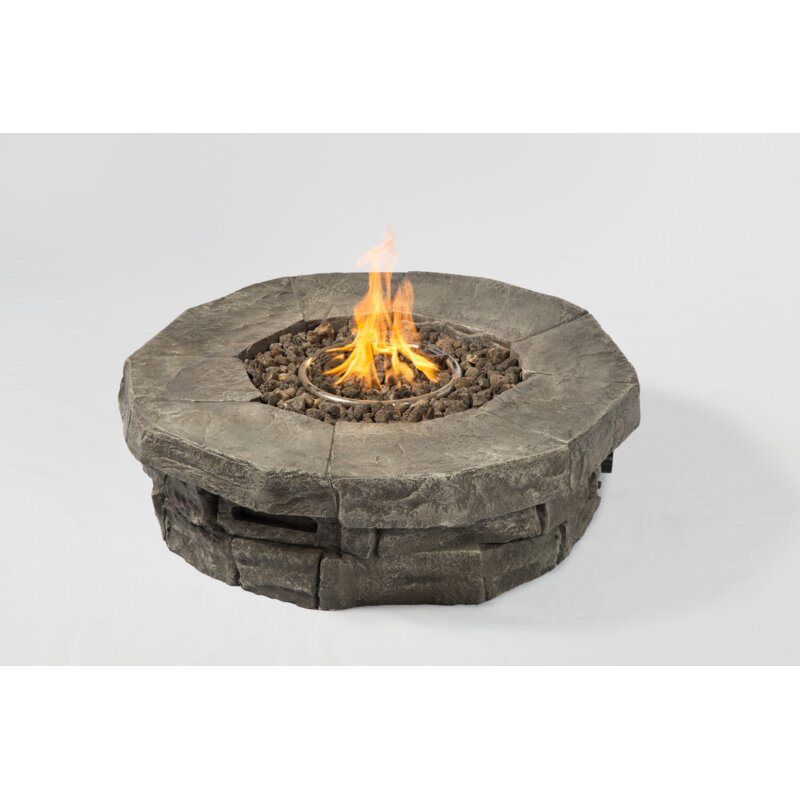 Sit back, relax and enjoy the outdoors year-round with this propane-powered fire pit table. Its fiber-reinforced concrete construction mimics the look of stone, blending rustic and modern design. This 11” H x 36” W x 36” D pit is equipped with a simple push-button ignition and burns 20 lbs. of liquid propane (not included) for an output of 40,000 BTUs of heat. A polyester storage cover is also included to protect it from the elements. Plus, it can be converted to natural gas by a certified gas technician.