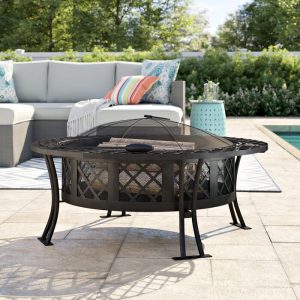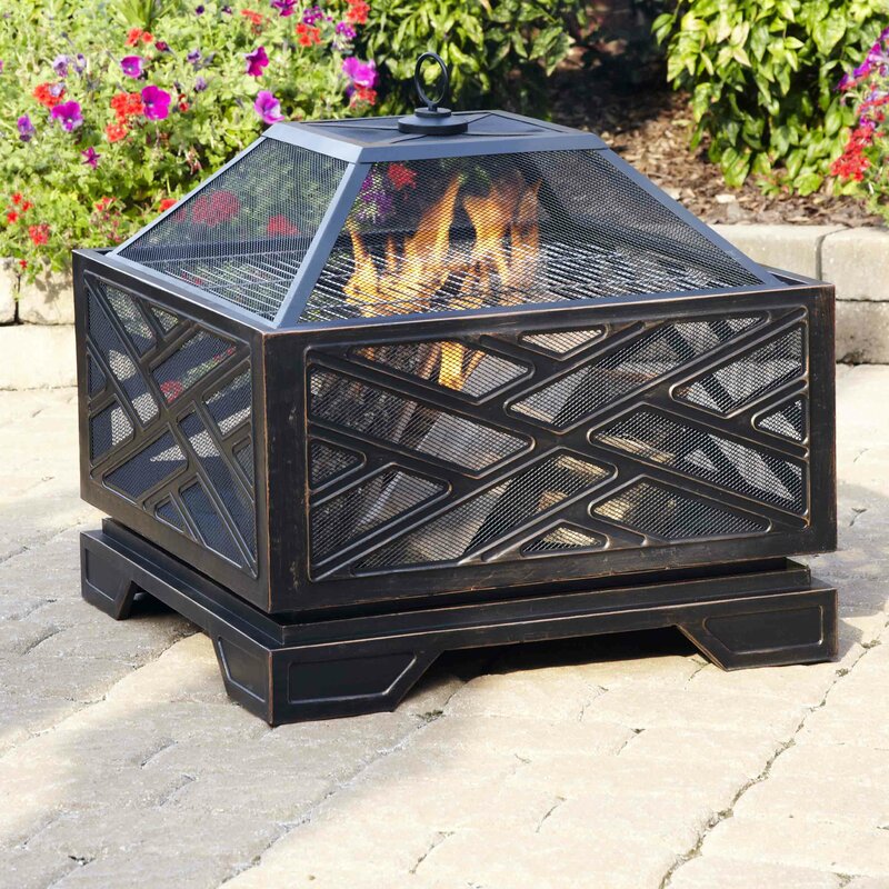 The Ebern Designs Martin Steel Wood Burning Fire Pit in Rubbed Bronze is a beautiful way to add warmth and atmosphere to your backyard or patio. This square outdoor fireplace is designed with a mesh wall lining to eliminate dangerous sparks and embers while providing a 360-degree view of the fire. The fire bowl has a large wood capacity for bonfires, a mesh spark guard lid for easy wood replacement access, air vents to maintain consistent air circulation and holes at the bottom of the pit for proper water drainage.
