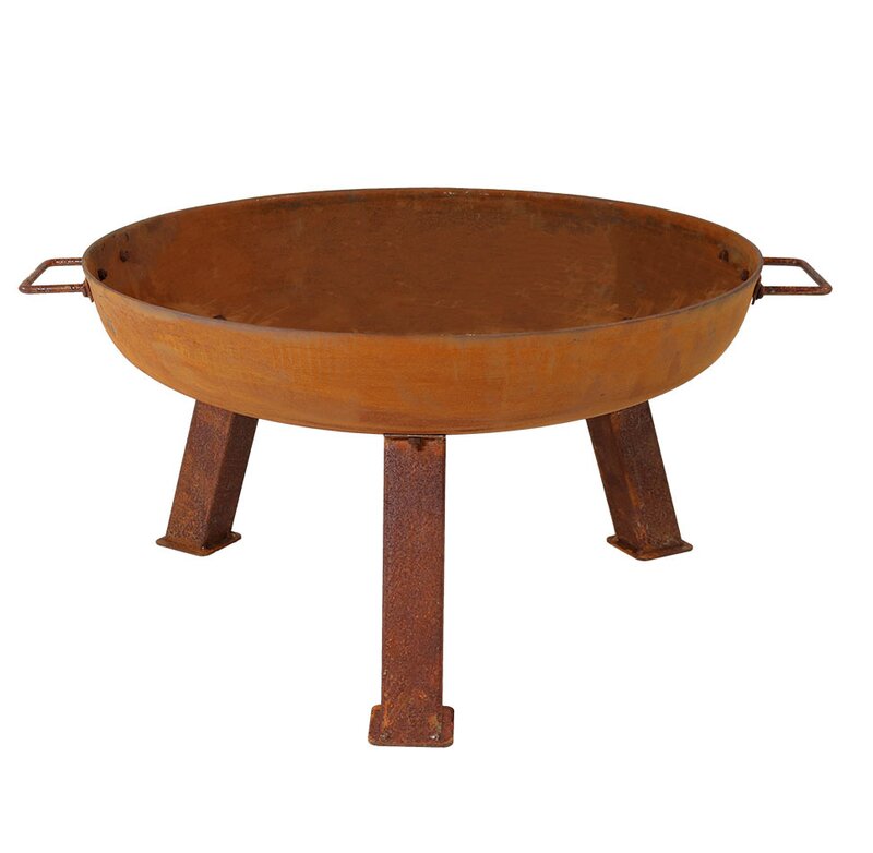 The rustic Bowl Cast Iron Wood Fire Pit is fit for any backyard or cabin. The fire pit bowl is made from durable cast iron and is aged using an oxidation process for a rustic look. This process gives the fire pit bowl a look that is both classic and charming. The handles and overall design of the fire pit bowl makes it look like it came straight from the old west.