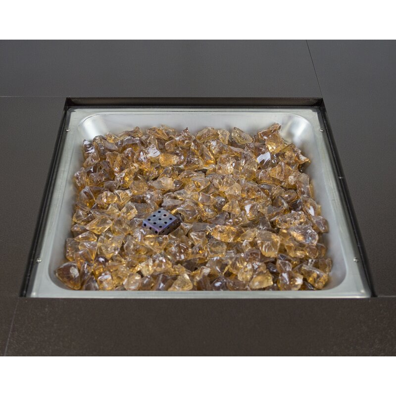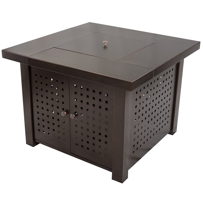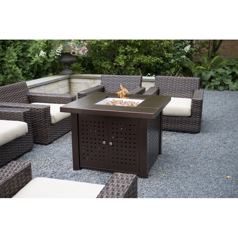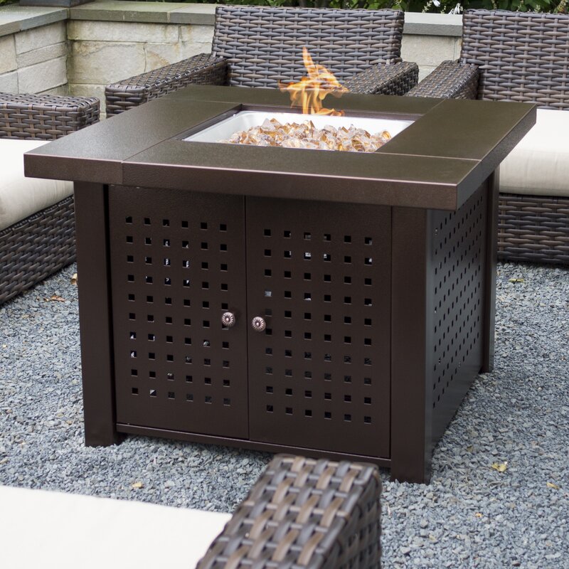 Give your outdoor décor a makeover with the Eden Steel Propane Fire Pit Table from Ebern Designs. This decorative fire pit is constructed of heavy-duty steel that features a perforated design on the sides. The rubbed bronze finish will match with various colors and styles of outdoor furniture, making it the perfect addition to your deck or patio. The impressive 40,000 BTU’s of heat output will keep your guests warm and cozy on the chilliest of nights, while the included amber colored glass rocks add a warm flame effect. When the fire pit is not in use, convert it into an occasional table with the included table lid. Let the good times roll with family and friends around the Eden gas fire pit table.