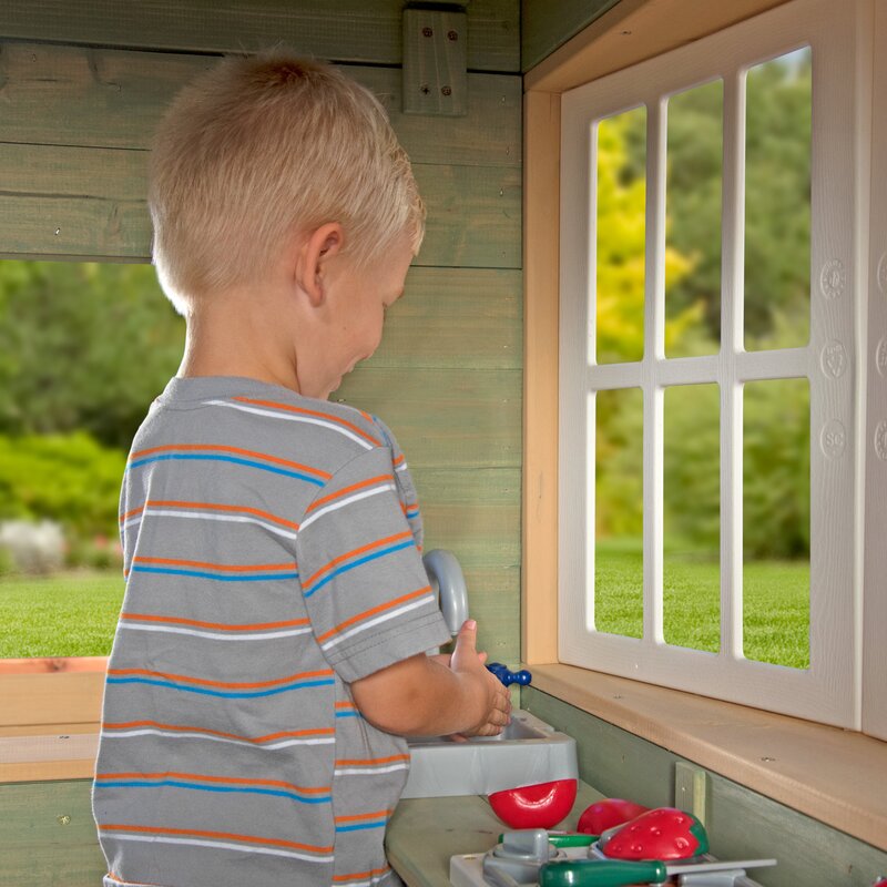 Let your little ladies and gentlemen transport back to the elegant Victorian times within all the comforts of the modern day. With its large bay window, English garden bench, airy half door, classic serving station and a fully stocked kitchen complete with phone, contemporary appliances, and fresh Hook & Loop Fastener food, the Victorian Inn 6.17′ Playhouse sets up your kids for years of fun. The Victorian Inn 6.17′ x 5.42′ Playhouse is made from 100% cedar. With small, tight knot structure, your lumber will be less likely to develop small cracks emanating from knots. In laboratory testing, their durable cedar wood proved to be rot resistant and highly resistant to natural decay.
